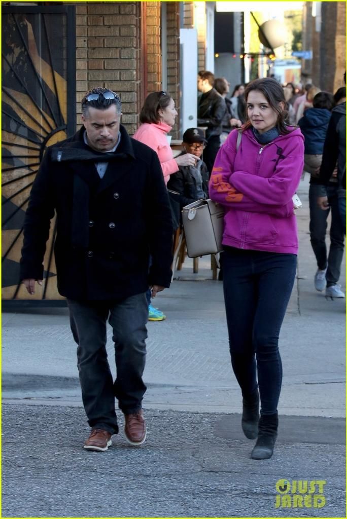 Katie (with her bodyguard) out and about in Venice, CA to grab some Italian food from Gjelina Take Away (12/28/14)