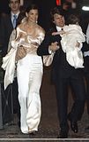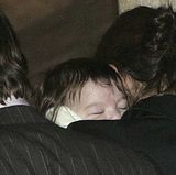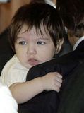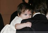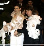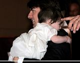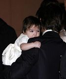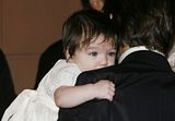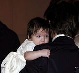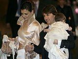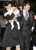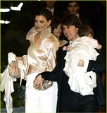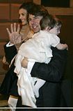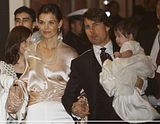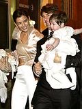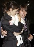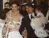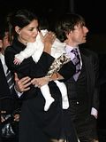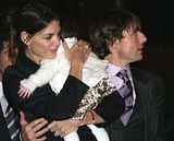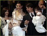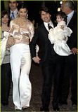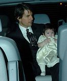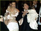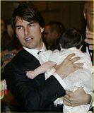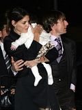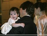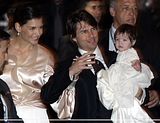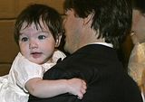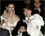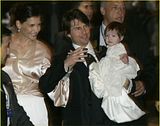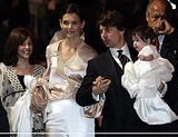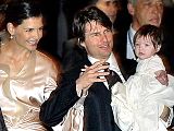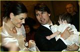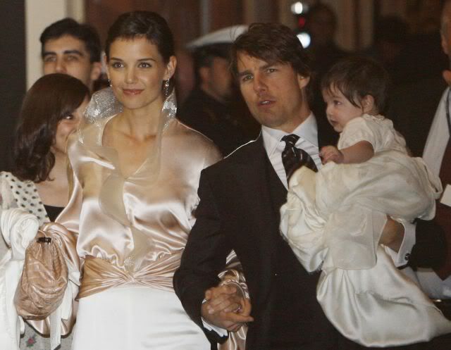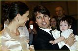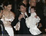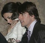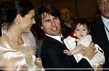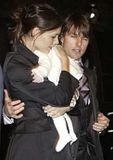 Actor Tom Cruise, and actress Katie Holmes, holding their daughter Suri,