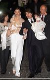 by security guards as they walk to a pre-wedding dinner at Ristorante Nino
