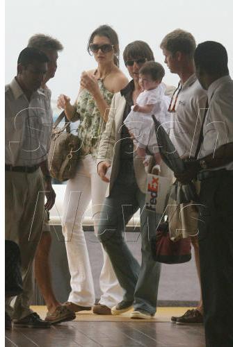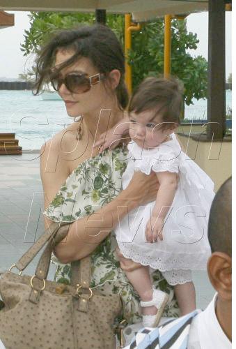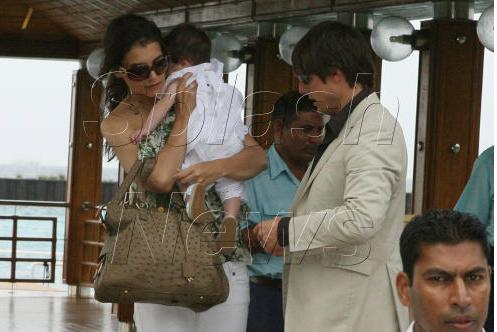 On their return, the couple arrived at the Male International Airport in the Maldives with baby Suri at 7 am. Tom was dressed casually with trainers while Katie was wearing a pair of Victoria Beckham white jeans. Tom flew home with his family in his private Gulfstream jet, which was at the airport.